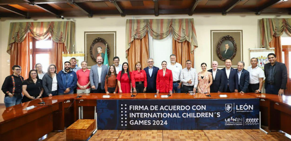 La presidenta municipal de León, Guanajuato, Ale Gutiérrez, encabezó la firma de acuerdo para aceptar que León sea la sede de la edición 56 de los International Children’s Games, que se realizarán del 15 al 20 de julio de 2024.