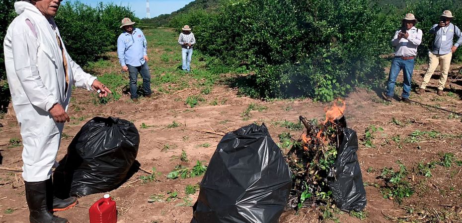 *El organismo federal posee una red de 38 mil 440 trampas con atrayentes específicos para el insecto vector del HLB de los cítricos y personal operativo participó en un simulacro contra el cancro de los cítricos.
