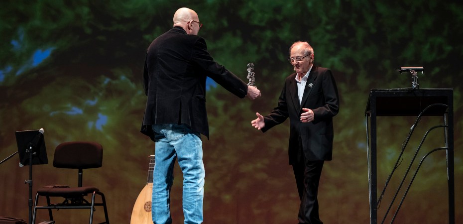 Málaga, España.- En el marco del 41 Festival de Teatro de Málaga, el actor Emilio Gutierrez Caba recibe el Premio Málaga que concede el festival. El galardón se le entregó al finalizar el espectáculo poético-musical Decíamos ayer. Decimos hoy. El legendario actor recibió emocionado el premio y recordó que su bisabuelo inauguró el Teatro Cervantes y su familia se ha presentado en muchas ocasiones en este foro.