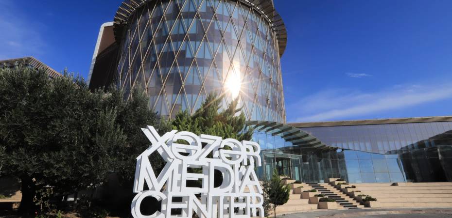 El edificio de la televisión, construido por primera vez en Azerbaiyán, según la lógica de la televisión, pertenece precisamente al Centro de Medios de Jazar.