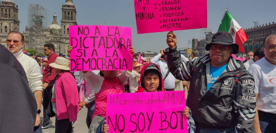 “Las ciudadanas y los ciudadanos exigimos que el presidente ya no se meta en la elección: no más propaganda, no más Servidores de la Nación ni más secretarios de Estado usando los programas sociales con fines electorales”, subrayaban los mensajes desde el Zócalo.