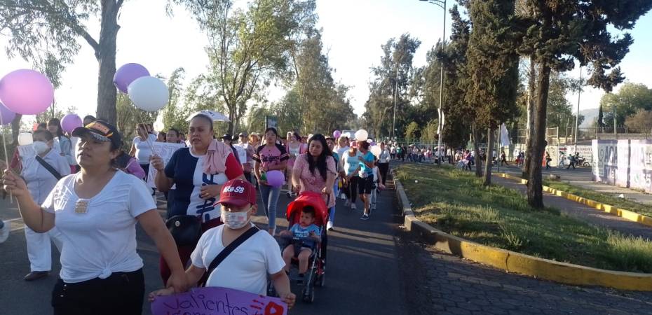 Mujeres integrantes del Movimiento Antorchista en la alcaldía Tláhuac realizaron dos caminatas para conmemorar el Día Internacional de la Mujer.
