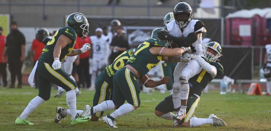 Naucalpan, Estado de México.- La línea defensiva de los Raptors del Valle de México recuperó su capacidad para contener a los atacantes rivales mientras Luis Humberto López Tinoco y Kevin Brian Correa realizaron un gran juego acarreando el ovoide a lo largo del partido jugado en el estadio de la FES Acatlán, para que la #FuriaVerde volviera a la senda del triunfo al ganar 14-6 a los Galgos de Tijuana que no pudieron correr a su gusto a las diagonales.
