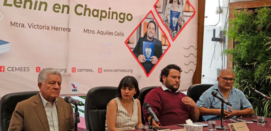 La maestra Victoria Herrera y el maestro Aquiles Celis, investigadores del CEMEES, dieron a conocer la publicación del libro Lenin en Chapingo. Este libro es resultado de la investigación que sigue el proceso que transformó a la Escuela Nacional de Agricultura (ENA) en la Universidad Autónoma Chapingo (UACh) de la mano del “Grupo Bolchevique” proveniente de la corriente ideológica marxista fundada por José Revueltas, conocida como “Espartaquismo”. La presentación contó con la participación del Dr. Jesús Hernández Jaimes, investigador de la Universidad Nacional Autónoma de México (UNAM), y del Ing. Omar Carreón Abud, activista social en el estado de Michoacán. Asistieron al evento como invitados dos de los protagonistas de este movimiento: los ingenieros Aquiles Córdova Morán y Pedro Zapata Baqueiro.