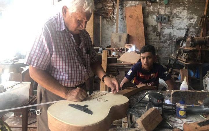 Comentó finalmente que desde muy joven empezó a trabajar la artesanía de los instrumentos, hace 38 años cuando llegó al grupo Siquisirí, “yo pude hacer los instrumentos del grupo y son los que usan; y desde entonces me quedé haciendo instrumentos. Afortunadamente han salido del país, a muchos lados: mandé una guitarra a las Islas Canarias, y me regresaron un video tocándola.