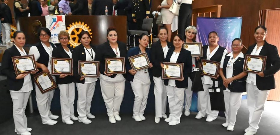 El personal de salud es clave para alcanzar los objetivos de atención integral, oportuna con trato digno e incluyente, sin discriminación y considerando siempre al centro a la persona, afirmó el director general del Hospital Juárez de México (HJM), Gustavo Esteban Lugo Zamudio, durante la entrega de reconocimientos a profesionales de este hospital, por parte del Club Rotario Valle de México.