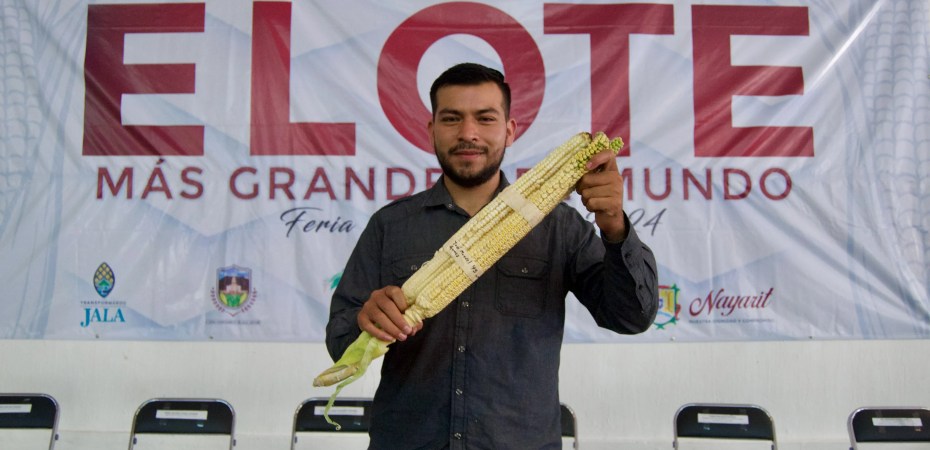 En el marco de la Feria del Elote Jala 2024, el secretario Víctor Villalobos Arámbula y el gobernador Miguel Ángel Navarro Quintero entregaron los premios y reconocimientos a los agricultores ganadores del concurso “El Elote más Grande del Mundo”, donde el primer lugar fue para José Manuel Gómez Rodríguez por presentar una mazorca de 45 centímetros (de grano a grano).