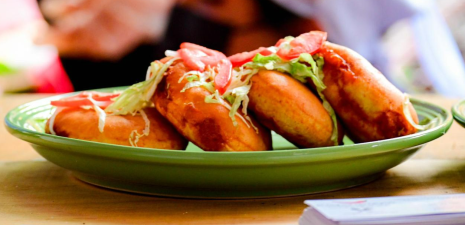 *El pambazo es un bolillo pequeño hecho en aceite, bañado en salsa y relleno de guisado.
