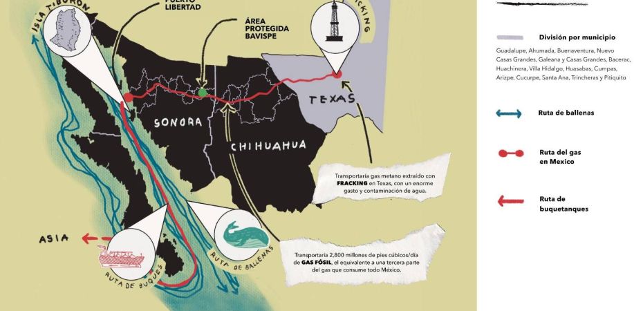 Para llevar el gas a la costa de Sonora, se plantea la construcción de infraestructura de 800 km de largo en nuestro país, atravesando sierras, comunidades, ríos, arroyos y zonas de importancia ecosistémica.