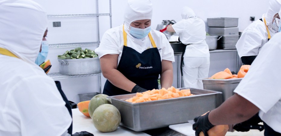 Por eso, es vital ser altamente eficientes y asegurar que siempre reciban sus porciones en condiciones de alta calidad.”En Mexicali, Baja California, Don Cacahuato opera una Mega Cocina reconocida por sus altos estándares de inocuidad, certificada con el Distintivo H. Esta instalación tiene la capacidad de producir 10,000 desayunos calientes diarios como parte de programas sociales destinados a mejorar la seguridad alimentaria de familias en situación de vulnerabilidad, en colaboración con las autoridades.