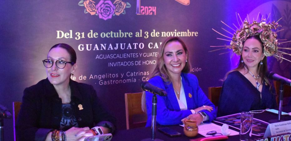 María Guadalupe Robles de León, Secretaria de Turismo e Identidad, en conjunto con Samantha Smith Gutiérrez, Presidenta Municipal de Guanajuato Capital, dieron los pormenores de este festival que se llevará a cabo del 31 de octubre al 03 de noviembre y tiene como invitado especial a Aguascalientes y Guatemala.