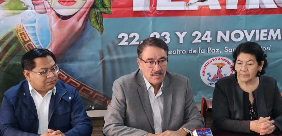 Ciudad de México.- El Movimiento Antorchista Nacional anunció, en conferencias de prensa realizadas en todas las entidades del país, la XXIII edición del Encuentro Nacional de Teatro 2024, que se realizará los días 22, 23 y 24 de noviembre, en San Luis Potosí, con la presentación de 32 puestas en escena y más de 500 actores en dos categorías: “Semiprofesional” y “Amateur”, mismas que tendrán como sedes el majestuoso Teatro de la Paz y el Centro de Difusión Cultural “Raúl Gamboa” del Instituto Potosino de Bellas Artes (IPBA).