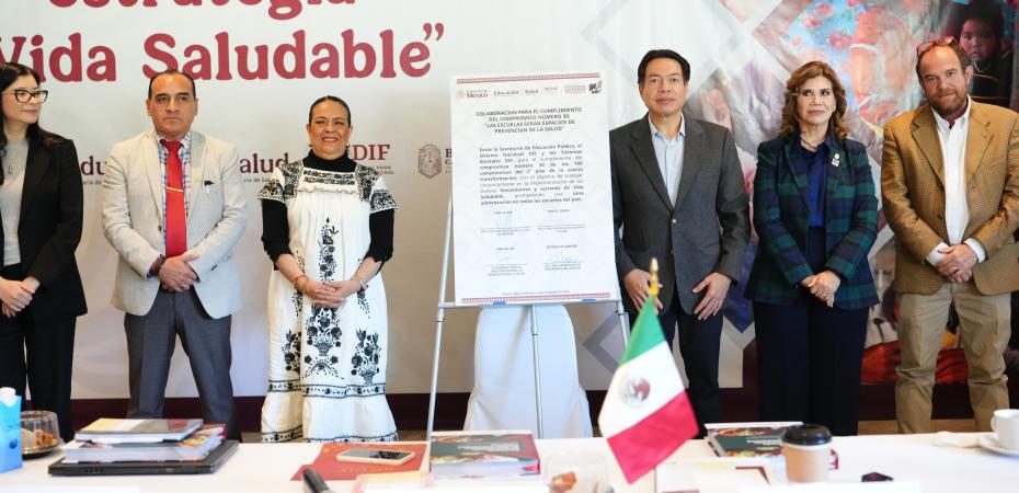 “Vida saludable es uno de los ejes transversales en la Nueva Escuela Mexicana; los nuevos libros de texto hablan sobre estos temas; los maestros en el aula desarrollan proyectos que tienen que ver con el cuidado de la salud, con el cuidar su cuerpo, su mente y tener hábitos saludables de alimentación”, agregó.