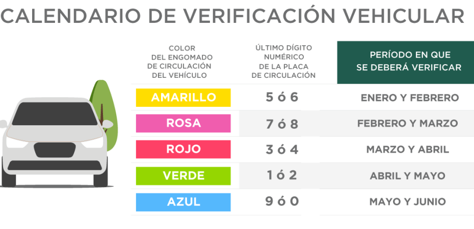 Es importante recordar que el calendario de verificación para los automóviles registrados en la Ciudad de México sigue aplicándose según el último dígito de las placas y el color del engomado de circulación. A continuación, se detalla el calendario: