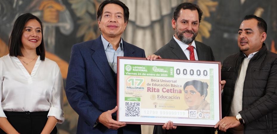 En representación del director general de Lotería Nacional, Marco Antonio Mena Rodríguez, el subdirector general de Nuevos Negocios, Mercadotecnia y Publicidad, Jorge Antonio Cano Félix, subrayó que la entidad rinde homenaje a Rita Cetina en el billete del Sorteo Superior No. 2832, ícono de la Beca Universal que apoya el crecimiento integral de la educación de nivel secundaria y antecedente que hace posible que México tenga como presidenta a la Doctora Claudia Sheinbaum Pardo.