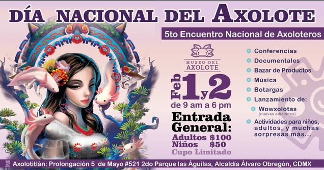 - Lunes, 03 de febrero. Museo del Axolote tendrá una charla sobre la conservación del axolote en la FES Iztacala UNAM.