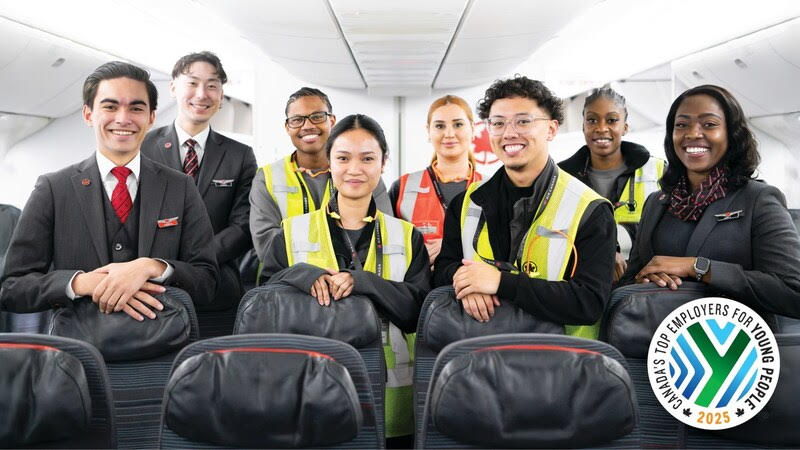 Air Canada fue reconocida por segundo año consecutivo como uno de los Mejores Empleadores de Canadá para Jóvenes 2025 por Mediacorp. Este prestigioso reconocimiento refleja el compromiso de la compañía de crear oportunidades para que los jóvenes prosperen y se establezcan como los líderes del futuro.