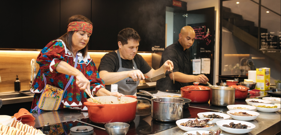 Tras la presentación, los asistentes participaron en un taller gastronómico en el que aprendieron a rellenar gorditas de maíz azul con pierna de cerdo en salsa de chile colorado. Descubrieron y saborearon ingredientes típicos como carne seca, machaca, queso menonita, y una gran variedad de salsas y chiles de la región.