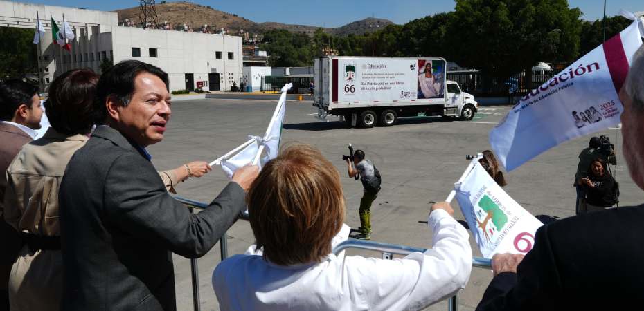 Tlalnepantla, Méx.-El secretario de Educación Pública, Mario Delgado Carrillo, y la titular de la Comisión Nacional de Libros de Texto Gratuitos (Conaliteg), Victoria Guillén Álvarez, dieron el Banderazo de salida para la distribución de los 156.7 millones de ejemplares para el ciclo escolar 2025-2026.