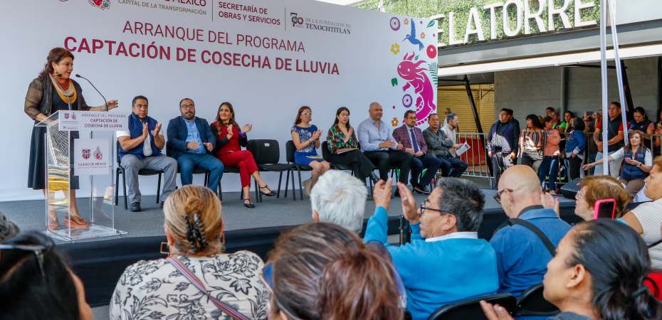 La jefa de Gobierno, Clara Brugada Molina, puso en marcha el programa Captación de Agua de Lluvia en el mercado Martínez de la Torre, el primero de 20 mercados de la Ciudad de México que por cuatro meses no utilizará agua de la red de agua potable, al disponer del líquido pluvial mediante este mecanismo.