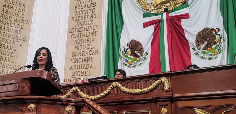 Así fue el inicio de la lectura de la diputada y Coordinadora de la Asociación Parlamentaria Mujeres por el Comercio Feminista e Incluyente, Diana Sánchez Barrios durante la sesión solemne con motivo de los 700 años de la Fundación de México-Tenochtitlán”.