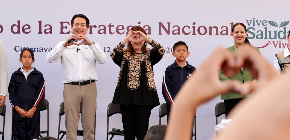 La gobernadora Margarita González Saravia agradeció a la mandataria federal por haber elegido a Morelos como una de las sedes para el arranque de la estrategia nacional «Vive saludable, vive feliz» y destacó que niñas, niños, madres, padres, familias, maestras y maestros están comprometidos con el programa.