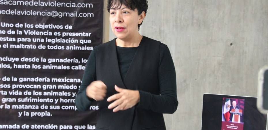 «En la ganadería mexicana, los procesos industriales generan un profundo miedo y sufrimiento en los animales. No solo padecen durante su corta vida, sino que además experimentan un gran horror al presenciar la matanza de sus compañeros y la propia», señaló la ambientalista Verónica Morgan y presidenta de la fundación» Sácame de la Violencia».