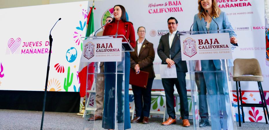 * La secretaria de Turismo del Gobierno de México y la gobernadora de Baja California presentaron los pormenores del Tianguis Turístico 2025, durante su Conferencia Mañanera