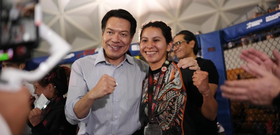 Como parte de las acciones que se realizan en el marco de la estrategia nacional Vive saludable, vive feliz , impulsada por la Presidenta Claudia Sheinbaum Pardo, el secretario de Educación Pública, Mario Delgado Carrillo, participó en el torneo de artes marciales mixtas Budo Sento Championship, realizado en el deportivo Plan Sexenal.