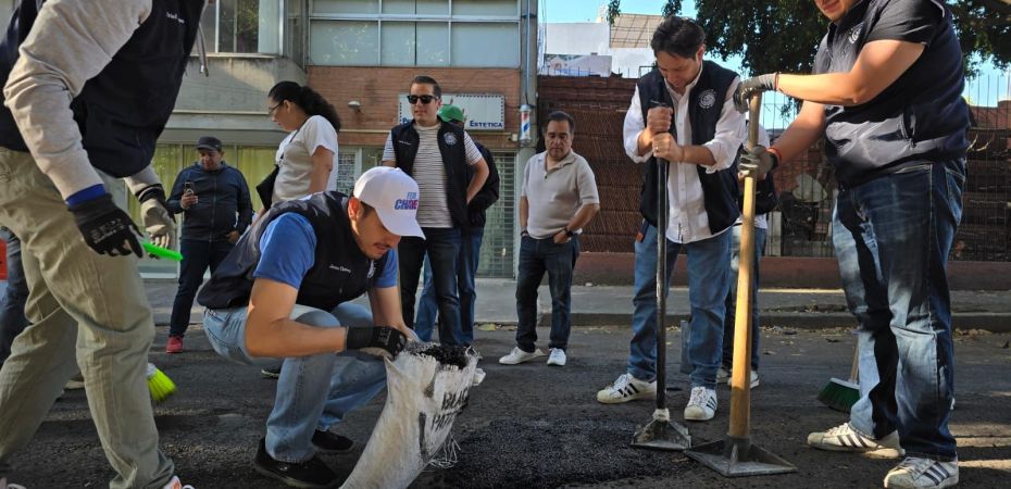 El programa «BACHEANDO ANDO» se encargó de la reparación de la calle Miguel Laurent, en el tramo comprendido desde José María Vértiz hasta el Eje Central Lázaro Cárdenas. Para esta tarea, se utilizó asfalto en frío, una solución práctica y rápida que permite reparaciones inmediatas del pavimento dañado. El diputado Chávez supervisó personalmente estas reparaciones y participó directamente en ellas junto a su equipo y ciudadanos voluntarios.