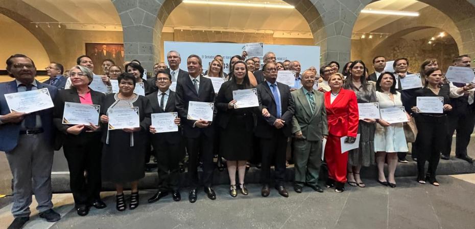 Cosa entre pares… El lunes 7 de abril cerca de 60 periodistas de la capital del país y de más de una veintena de entidades de la República se dieron cita en la Vieja Casona de Xicoténcatl, antigua sede institucional de la Cámara de Senadores, para recibir el Reconocimiento a la Trayectoria Profesional en Comunicación 2023-2024.