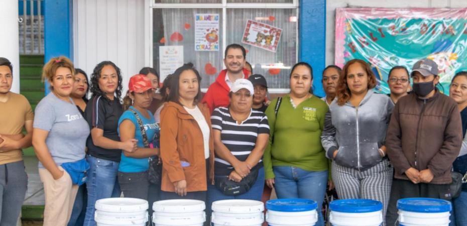 Naucalpan, Estado de México.- El coordinador de los diputados priístas del Estado de México, Elías Rescala, entregó a autoridades y madres de familia de la primaria «Profesor Enrique Gómez Bravo» impermeabilizante y pintura para mejorar las instalaciones educativas, en beneficio de 756 alumnos.