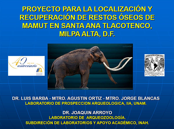 Mediante un proyecto interinstitucional entre el Instituto Nacional de Antropología e Historia (INAH) y la UNAM y con la ayuda de técnicas geofísicas, se detectó la masividad de sus huesos, corroborando que el cuerpo completo del mamut aún se hallaba enterrado; y así, con aprobación del Consejo de Arqueología del INAH y apoyo de la entonces delegación Milpa Alta, se realizó el proyecto de excavación.