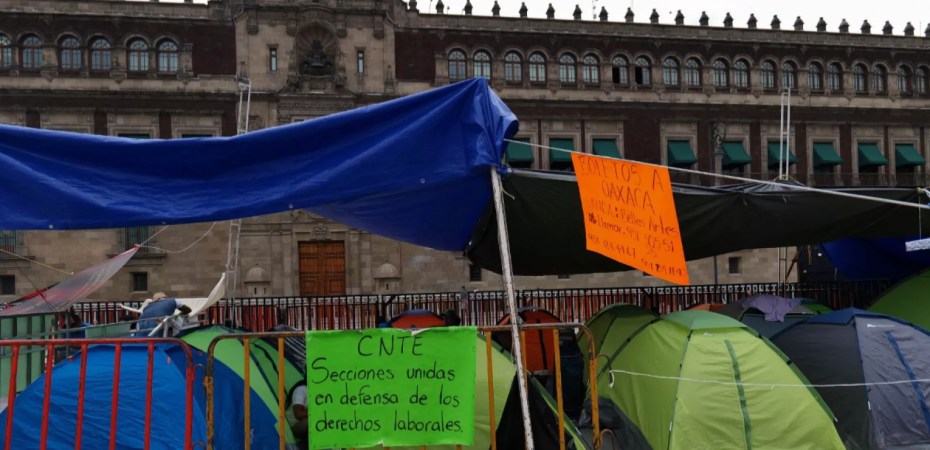 Integrantes de la Coordinadora Nacional de Trabajadores de la Educación (CNTE) bloquearon todos los accesos a Palacio Nacional, impidiendo se llevara de forma presencial la conferencia matutina de la presidenta Claudia Sheinbaum situación que obligó a tener comunicación vía redes.