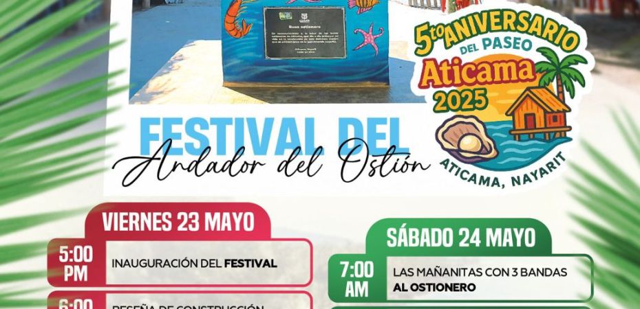 San Blas, Nayarit. – El Paseo de Aticama, en el municipio de San Blas, será sede este viernes 23 y sábado 24 de mayo del esperado Festival del Ostión 2025, una auténtica fiesta gastronómica y cultural que celebra la identidad costera de Nayarit y el invaluable trabajo de sus productores del mar.