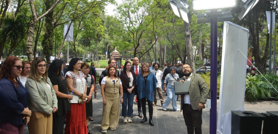 Brugada Molina destacó que este programa está dirigido y pensado en las mujeres y las niñas, por eso se diseñaron los postes de género, luminarias con pantalla que proyectan mensajes contra la violencia de género y para crear conciencia en toda la población.