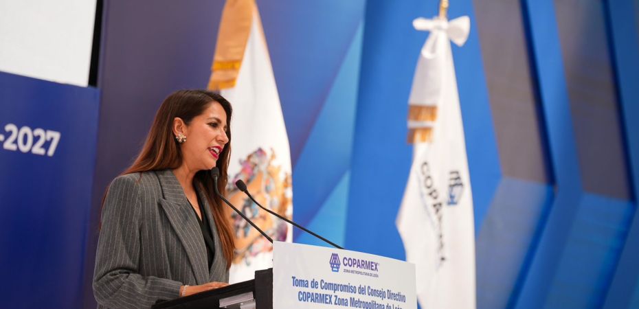 León, Gto.- En el marco de la toma de compromiso del nuevo Consejo Directivo 2025-2027 de COPARMEX Zona Metropolitana León, la Gobernadora del Estado, Libia Dennise García Muñoz Ledo, reafirmó su respaldo al sector empresarial y compartió importantes avances en materia de infraestructura hídrica, seguridad y apoyo a las MiPyMEs.