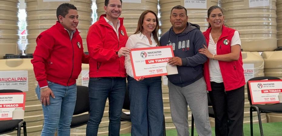 Naucalpan, Estado de México.- Con el objetivo de apoyar a las familias ante la crisis de agua, el Coordinador del Grupo Parlamentario del PRI en el Congreso Mexiquense Elías Rescala, acompañado por la Presidenta del PRI en el Estado de México, Cristina Ruiz, entregaron tinacos a vecinas y vecinos de las colonias Rincón Verde, Praderas de San Mateo, Las Aguilillas y Zona Alta del municipio de Naucalpan.