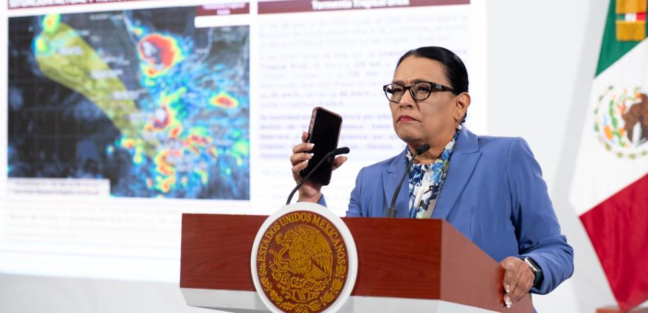 La Coordinadora Nacional de Protección Civil, Laura Velázquez Alzúa, atraves de una llamada telefónica, informó sobre la situación actual y trayectoria de la tormenta tropical Erik.