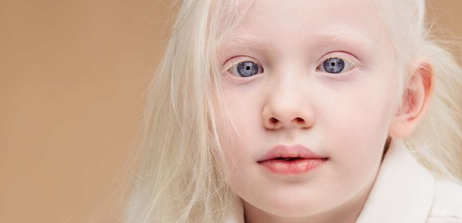 Además de la piel clara y cabello muy rubio o blanco, el albinismo puede tener implicaciones en la salud visual y, en algunos casos, estar asociado a otros trastornos como: