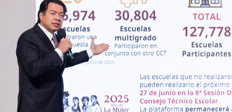 Mario Delgado Carrillo, titular de la Secretaría de Educación Pública (SEP), mencionó que el 30 de mayo se realizó una consulta de escuela por escuela para la creación de un nuevo sistema para el personal docente, durante la séptima Sesión Ordinaria del Consejo Técnico Escolar en la que se registró una respuesta de 127 mil 778 escuelas que participaron, donde destacaron la importancia en los procesos de admisión y reconocimiento.