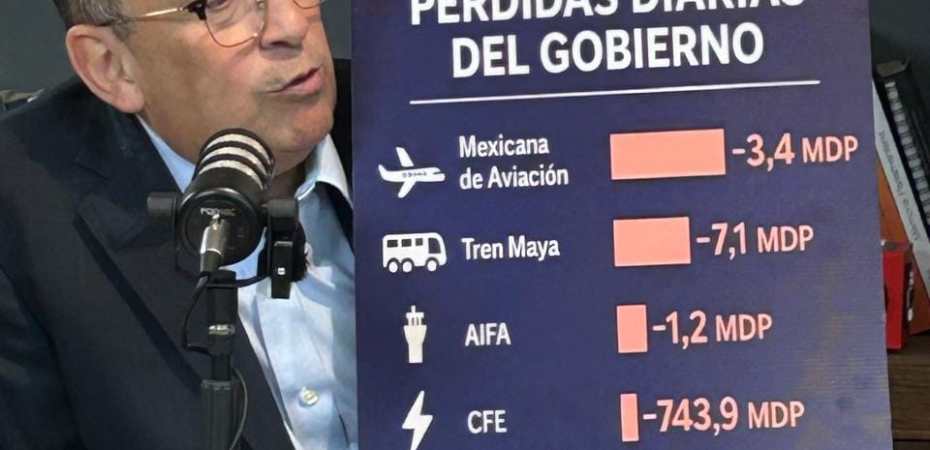 Durante la transmisión por redes sociales, el legislador priista mostró una imagen para explicar las pérdidas que generan las grandes obras del sexenio de Obrador: Mexicana de Aviación, pierde 3.4 millones de pesos diarios; Tren Maya, pierde 7.1 millones diarios; AIFA, pierde 1.2 millones diarios; CFE, pierde 743.9 millones diarios y Pemex, pierde 2,136 millones diarios, de acuerdo con datos oficiales.