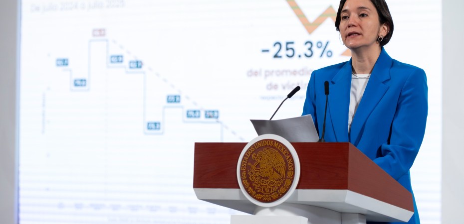 Marcela Figueroa Franco, titular del Secretariado Ejecutivo del Sistema Nacional de Seguridad Pública (SESNSP), dio a conocer el reporte de la incidencia delictiva con cifras al 31 de julio de 2025; también señaló que de septiembre de 2024 a julio de 2025 hay un descenso del 25.3 por ciento del promedio diario de víctimas homicidios dolosos a nivel nacional.