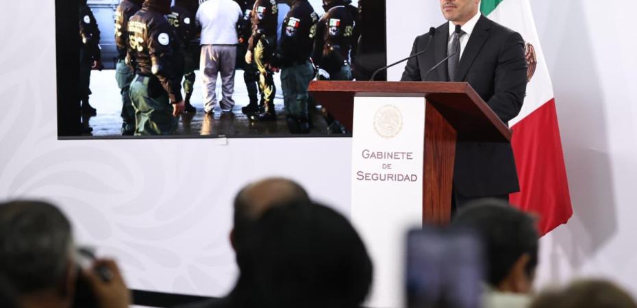 Acompañado por el fiscal General de la República, Alejandro Gertz Manero; el secretario de la Defensa Nacional, general Ricardo Trevilla Trejo; el secretario de Marina, almirante Raymundo Pedro Morales; y el comandante de la Guardia Nacional, general Hernán Cortés Hernández; García Harfuch informó que esta acción se realizó en coordinación, cooperación y reciprocidad internacional con el Gobierno de Estados Unidos. Y añadió que se acordó con el Departamento de Justicia de ese país no solicitar la pena de muerte.