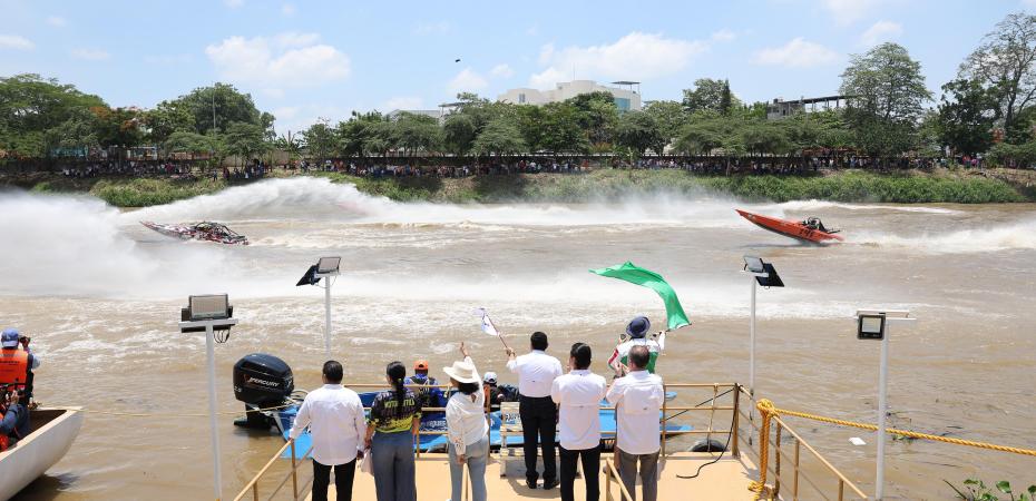 Durante la inauguración de la competencia avalada por la Federación Mexicana de Motonáutica, que tuvo como sede el malecón de Villahermosa, el mandatario estatal resaltó que en este marco se celebra el Festival ‘Ritmos y Sabores de Grijalva’, con la participación de más de 150 expositores, entre cocineras tradicionales, artesanas, emprendedores y artistas locales.