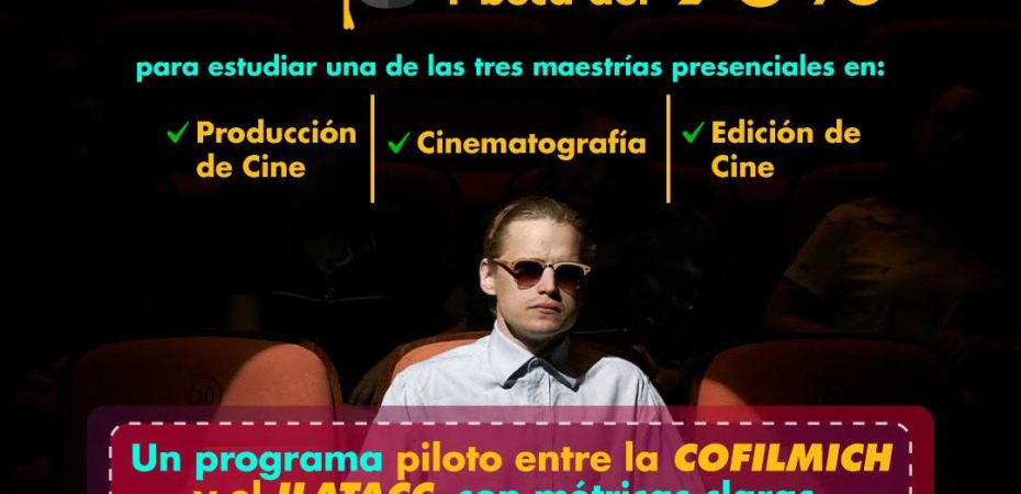 Michoacán.- La Secretaría de Turismo estatal (Sectur), la Comisión de Filmaciones de Michoacán (Cofilmich) y el Instituto Latinoamericano en Ciencias Cinematográficas (ILATACC) ofrecen una beca única del 90 por ciento a la comunidad cinematográfica michoacana. El apoyo es para profesionalizarse en una maestría de dos años en producción, cinematografía o edición.
