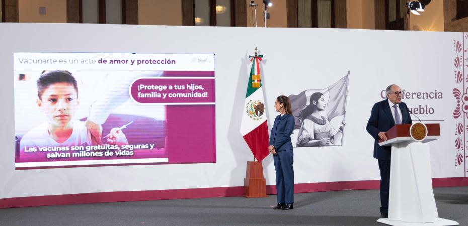 La cobertura de vacunación con esquema completo está 81.1 por ciento, se prevé llegar al 91 por ciento, recordó que durante la pandemia se dejó de vacunar a muchas niñas y niños.