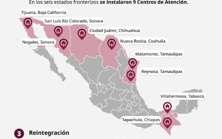 Su alcance comprende la asistencia y protección consular desde el momento del retorno, la recepción en centros de atención ubicados en los seis estados fronterizos de Baja California, Sonora, Chihuahua, Coahuila, Nuevo León y Tamaulipas y la reintegración social y económica a través de diversos servicios.