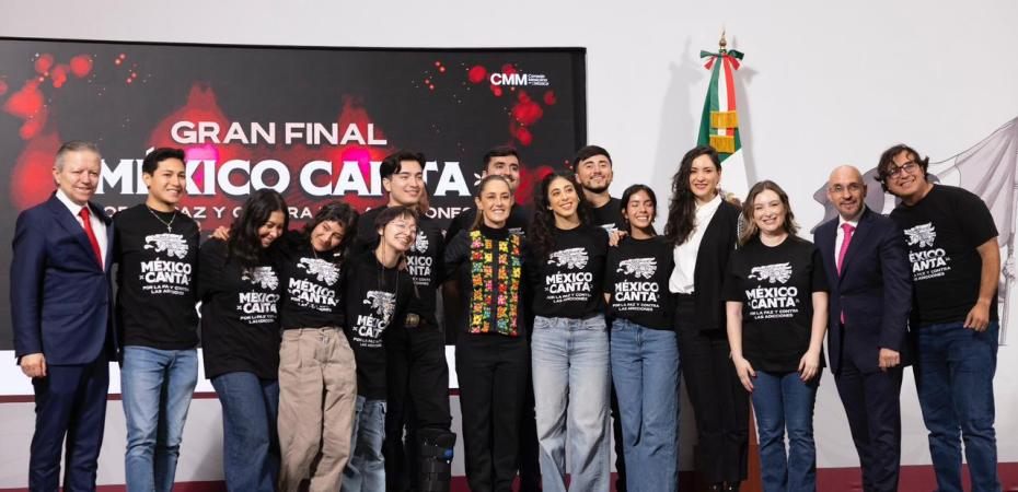 Uno a uno, de los semifinalistas del concurso México Canta cantaron en la mañanera.