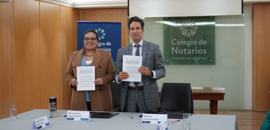 La firma se llevó a cabo en las instalaciones del Colegio de Notarios de la Ciudad de México y contó con la participación de la Mtra. Nina Carolina Izábal Martínez, presidenta del Consejo Directivo del ECUM, y del Dr. Roberto Garzón Jiménez, presidente del Consejo Directivo del Colegio de Notarios de la CDMX. Como testigos signaron la Mtra. Thalía Juárez Flores, primera secretaria propietaria del ECUM, y el Mtro. Ángel Gilberto Adame López, director general del IIJN.